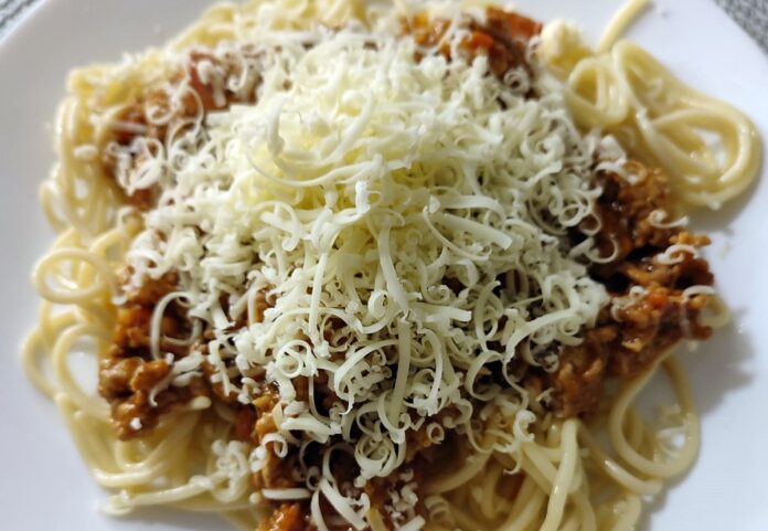 Bő vízben kifőzzük a spagettit, és a sajt lereszelésével már tálalásra elő is készültünk.